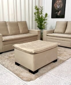 3{%%}Descrição{%%}Sofá 3 e 2 lugares França com Puff Veludo Bege A32 Larg. 1.86m