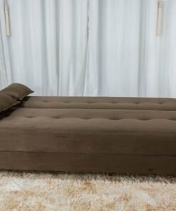 3{%%}Descrição{%%}Sofá Cama Arpoador Veludo Marrom Larg. 1.85m