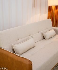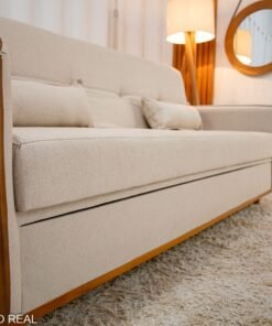 – Tecido linho: O linho possui uma textura naturalmente sofisticada, que confere ao sofá um aspecto elegante e atemporal. Seu visual suave e agradável pode dar um toque de classe à decoração de qualquer ambiente.