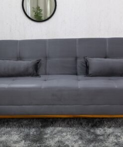 3{%%}Descrição{%%}Sofá Cama Madrid Veludo Cinza 2303 Larg. 1.80m – Molas Bonnel