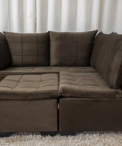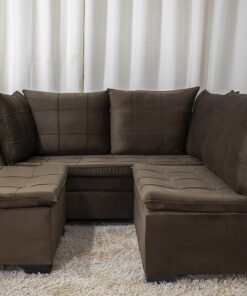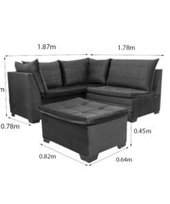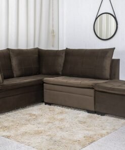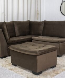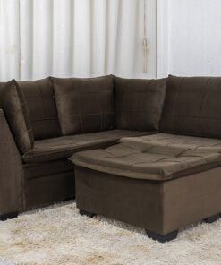 3{%%}Descrição{%%}Sofá Canto 5 lugares com Puff Viena Veludo Marrom A17
