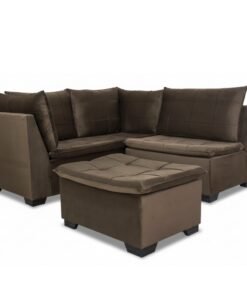 3{%%}Descrição{%%}Sofá Canto 5 lugares com Puff Viena Veludo Marrom A17
