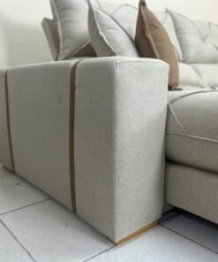 Braço reto com detalhe em courino com 20 cm de largura.