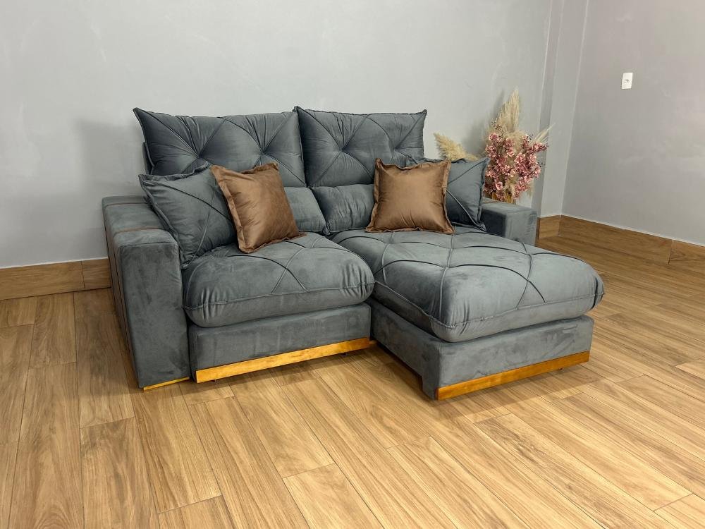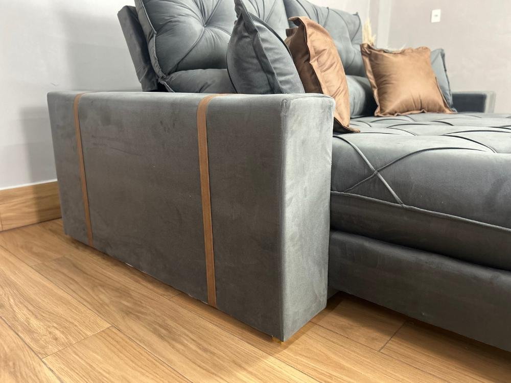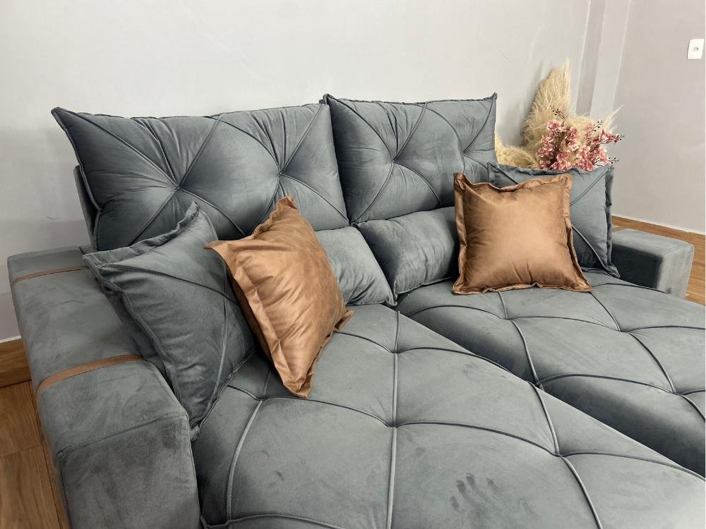 Sofá Retrátil e Reclinável Gran Bello – Cinza Veludo (LARGURA 2.10)