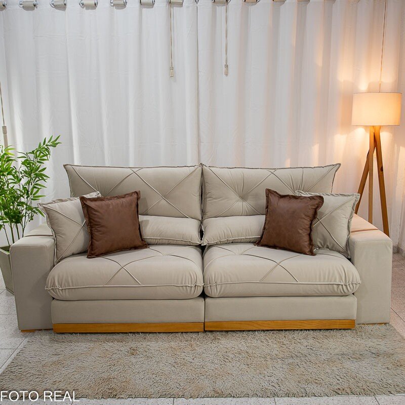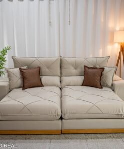 3{%%}Descrição#Benéficos das molas ensacadas{%%}Sofá Retrátil Reclinável Gran Bello 2.30m Veludo Bege Claro – Molas Ensacadas Pocket