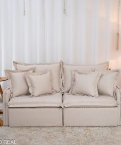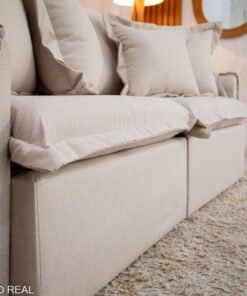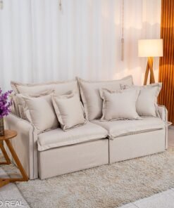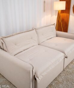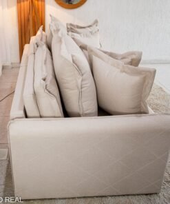 – Tecido linho: O linho possui uma textura naturalmente sofisticada, que confere ao sofá um aspecto elegante e atemporal. Seu visual suave e agradável pode dar um toque de classe à decoração de qualquer ambiente.