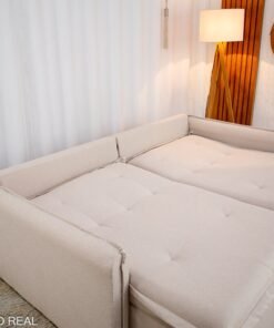 Atenção: Informamos que é normal haver uma abertura entre os módulos dos sofás retráteis. Essa abertura é necessária para evitar atrito entre os módulos durante o movimento de abrir e fechar, prevenindo o desgaste do tecido.