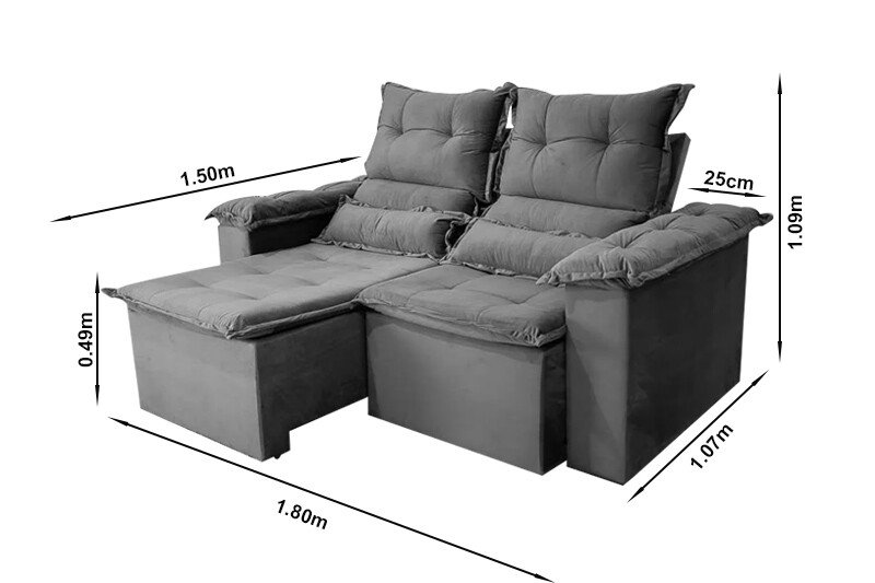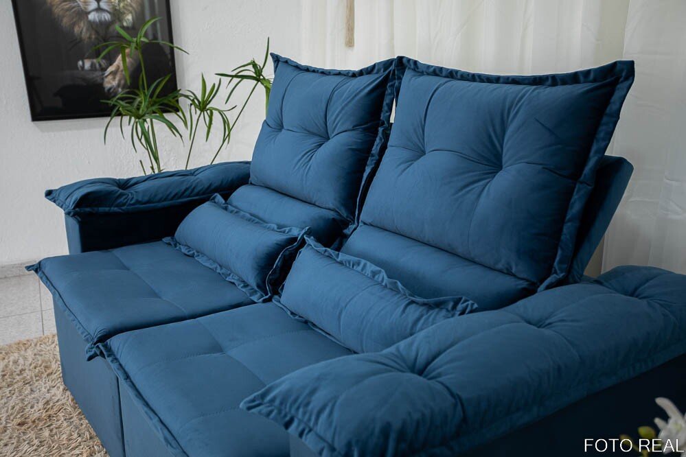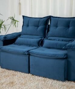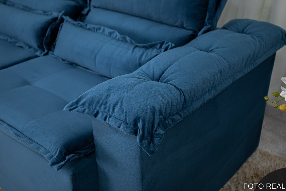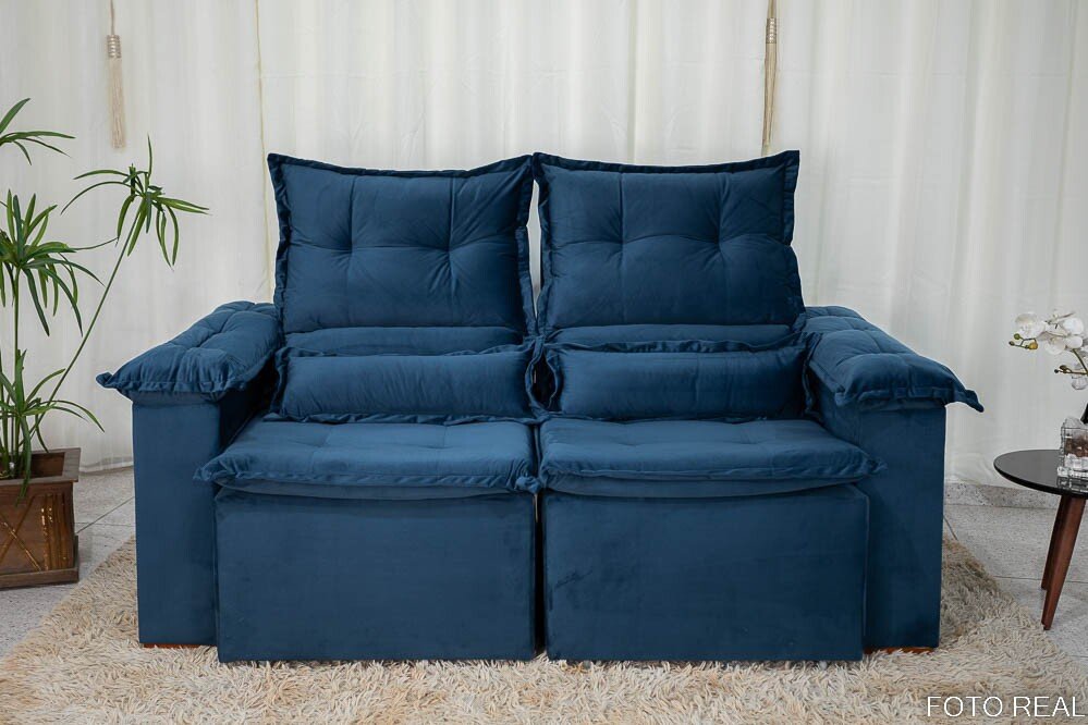Sofá Retrátil Reclinável Nicole 1.80m Veludo Azul A16