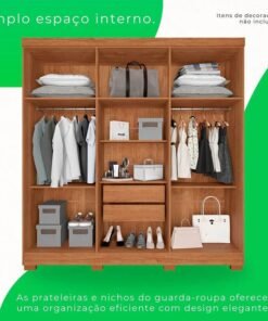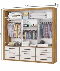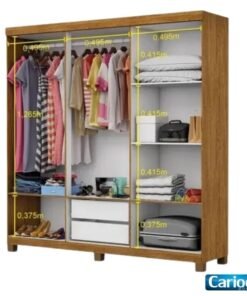 Roupeiro Anjos Cinamomo/Off 3 Portas 9 Gavetas C/ 1 Espelho Larg. 1.91m – Carioca Móveis