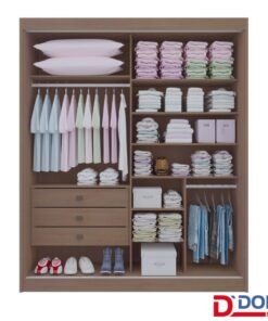 Roupeiro Casal Cristal Castanho/Linho 3 Portas 6 Gavetas 100% MDF Portas Flex Larg. 2.42m – D Doro