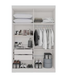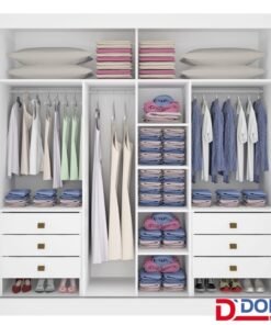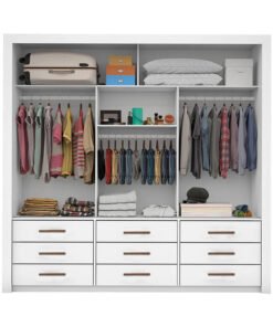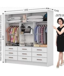 Roupeiro Casal Cancun Branco 2 Portas 6 Gavetas Detalhe Ripado 100% MDF Larg. 2.20m – D Doro