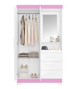 Roupeiro Solteiro NT 6020 Branco/Rosa 2 portas 3 Gavetas Flex C/Pés Larg. 1.08m – Notável