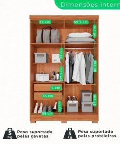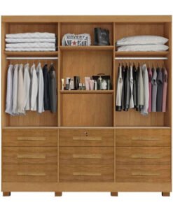 Roupeiro Solteiro Sevilha Cinamomo 3 Portas C/ 1 Espelho 9 Gavetas Larg. 1.62m – Carioca