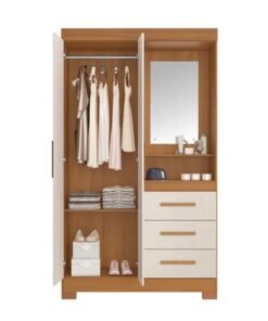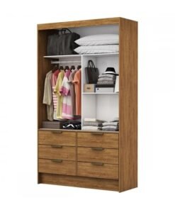 Roupeiro Solteiro Sevilha Cinamomo 2 Portas C/ 1 Espelho 6 Gavetas Larg. 1.08m – Carioca