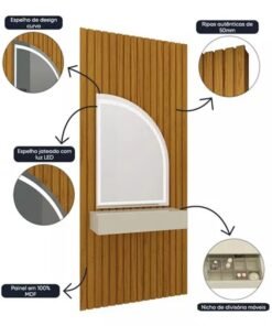 Roupeiro Casal Athenas Nature 3 Portas 9 Gavetas C/ Espelho e Pés 100% MDF Larg. 1.80m – Bianchi