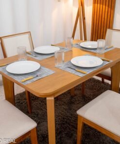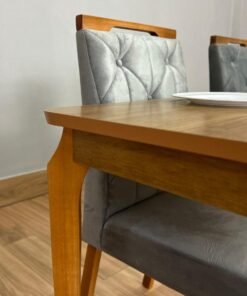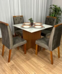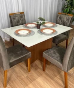 Mesa de Jantar los angeles 1.20×0.80 Com 4 Cadeiras Jasmim – Mel/Off White/Cinza Veludo