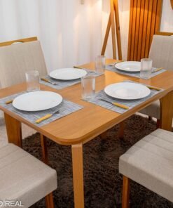 Mesa de Jantar Londrina 120×80 Cinamomo Rufato + 4 Cad. Dubai Linho Bege 629 Madeira – Art Assento