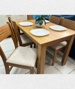 Mesa de Jantar Simpatia 0,90×0,90 Quadrada Com 4 cadeiras Jasmim – Cinamomo/Bege