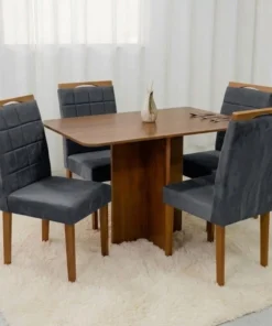 Mesa de Jantar Alegra 1.20×0.80 Com 4 Cadeiras Jasmim – Cinamomo/Cinza