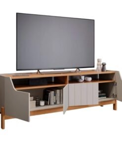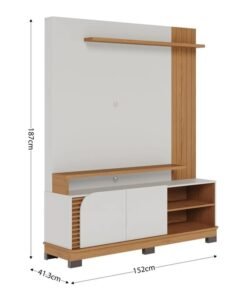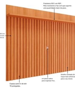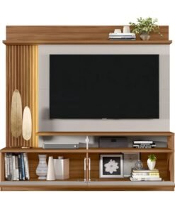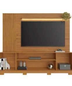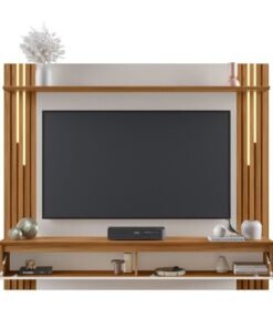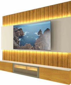 Rack Magnífico 212 Larg. 2.18m + Painel Magnífico 220 Nature/Off C/LED e Detalhe Ripado – Gelius