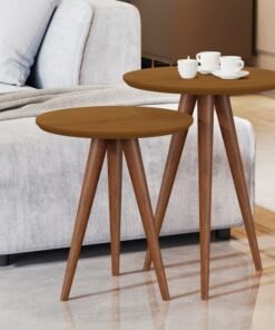Mesa de Jantar Perla 110×75 Mel + 4 Cad. Brisa Linho Assento Bronze – Viero