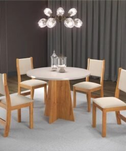Mesa de Jantar los angeles 1.20×0.80 Com 4 Cadeiras Jasmim – Mel/Off White/Cinza Veludo