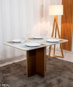 Mesa de Jantar Helo 1.20×0.80 Com 4 Cadeiras – Mel/Off White/Marrom Veludo
