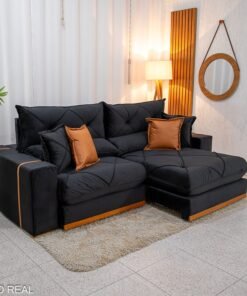 Sofá Retrátil Reclinável Porto Madero 2.70m- Preto Veludo D-33